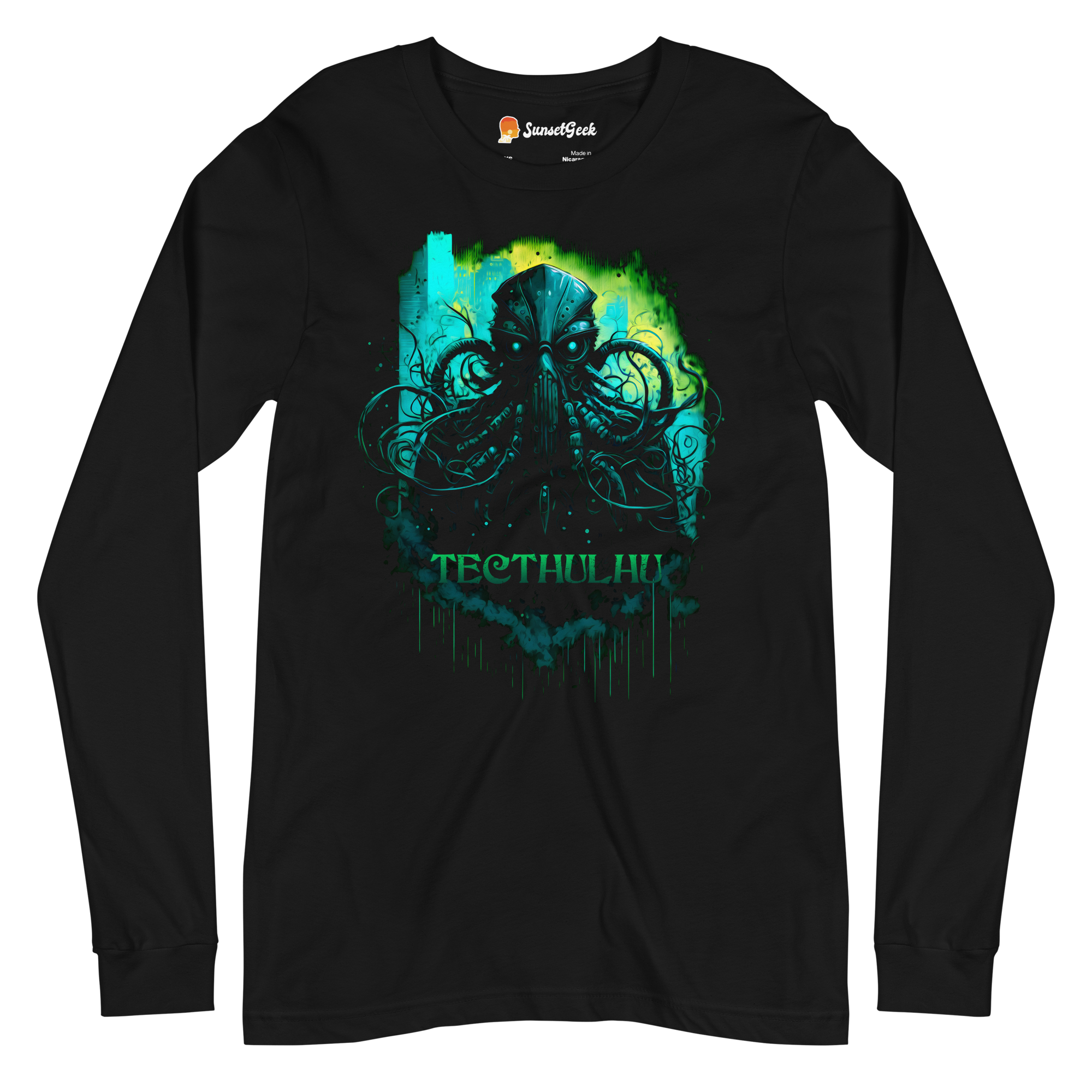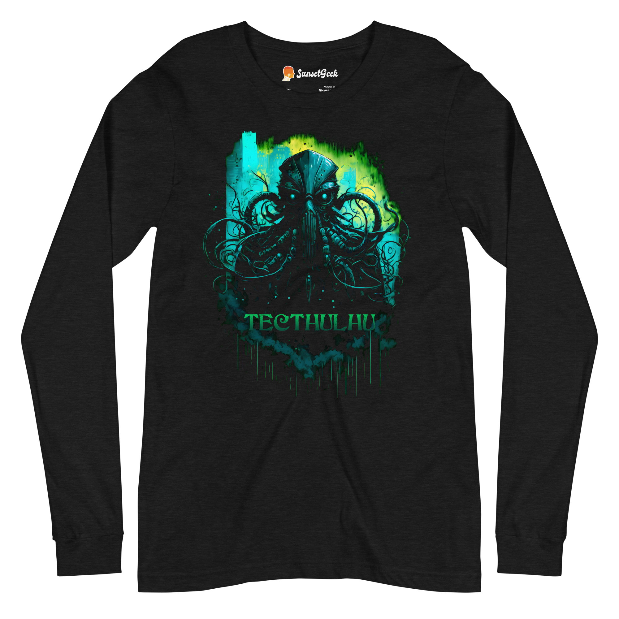 The TeCthulhu Tee from Sunset Geek is the perfect choice for any H.P. Lovecraft fan and technology enthusiast. This t-shirt features an impressive and detailed depiction of a cybernetic, technologically advanced version of the infamous creature Cthulhu. The design is a clever blend of H.P. Lovecraft’s creature and the love of technology. The t-shirt is made from high-quality materials, ensuring a comfortable fit. The bold colors and attention to detail make this t-shirt a unique and stylish piece of clothing. It is perfect for casual wear and layering, perfect for showing off your love of technology and H.P. Lovecraft’s universe in style. Make a statement with the TeCthulhu t-shirt from Sunset Geek.